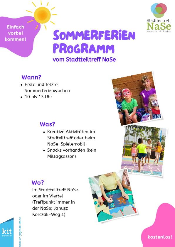 In der ersten und letzten Ferienwoche von 10.00 bis 13.00 Uhr gibt es viel auszuprobieren und zu entdecken: Spielmobil, Tattoos, Schmuck basteln, Schnitzeljagd …