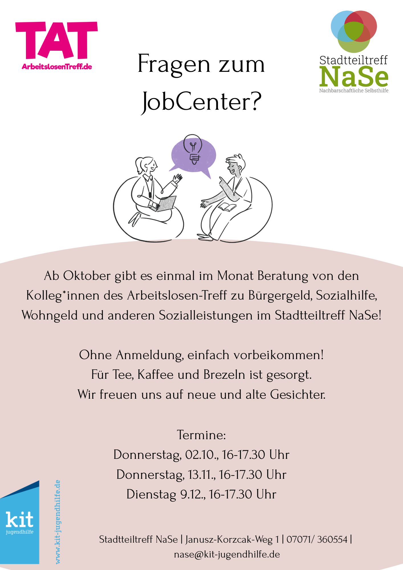 Ab Oktober gibt es im Stadtteiltreff Nase einmal im Monat kompetente Bürgergeld- Beratung von unseren Kolleg*innen des ArbeitslosenTreff (TAT).